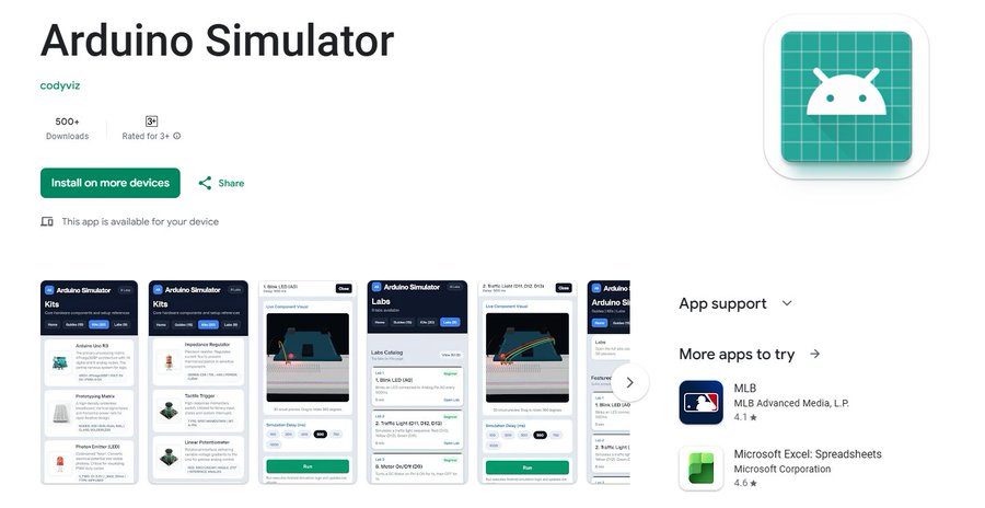 Ported the web Arduino simulator to React Native and shipped it on Google Play. Pre-built labs with live 3D simulation — pick a lab, run the code, watch it react. April update added real Arduino Uno support via OTG: connect your board, flash code directly from your Android phone.